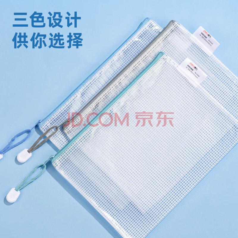 商品相册:得力(deli)63451网格资料袋 A5拉链袋文件袋 网格拉链袋颜色随机 10个装【ZY】第