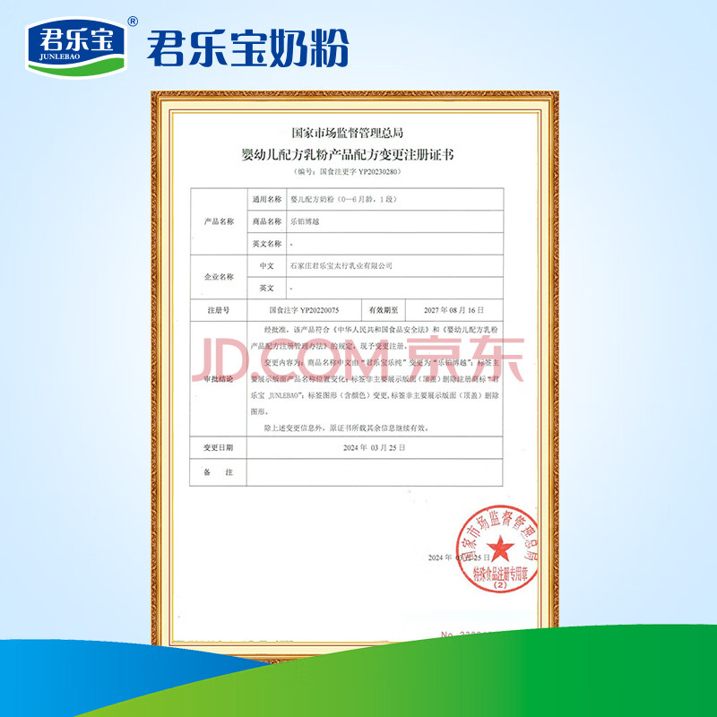 商品相册:君乐宝乐铂博越1段婴儿配方奶粉(0-6个月龄) 800克第
