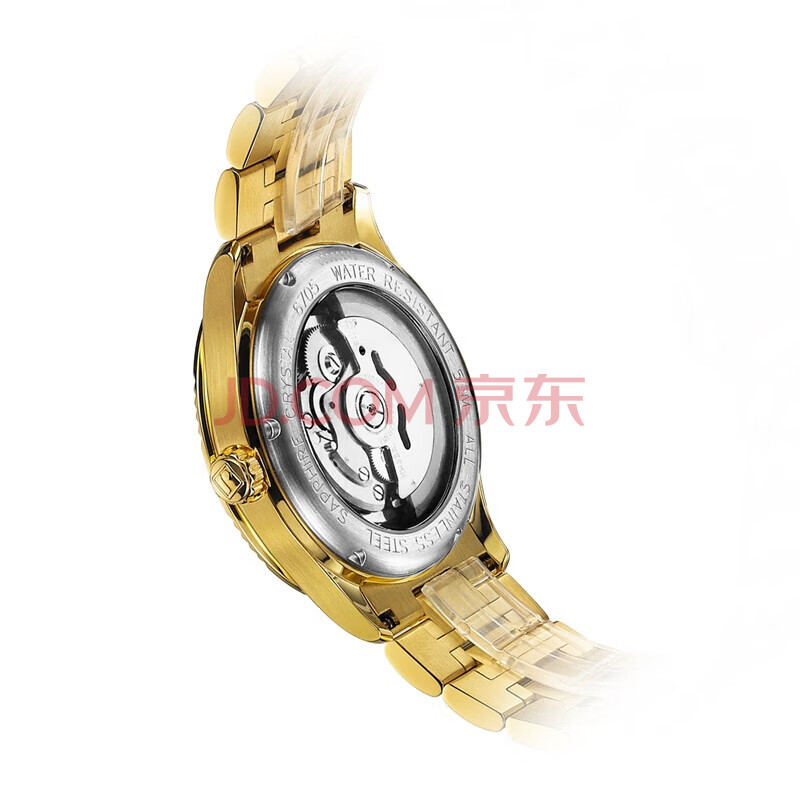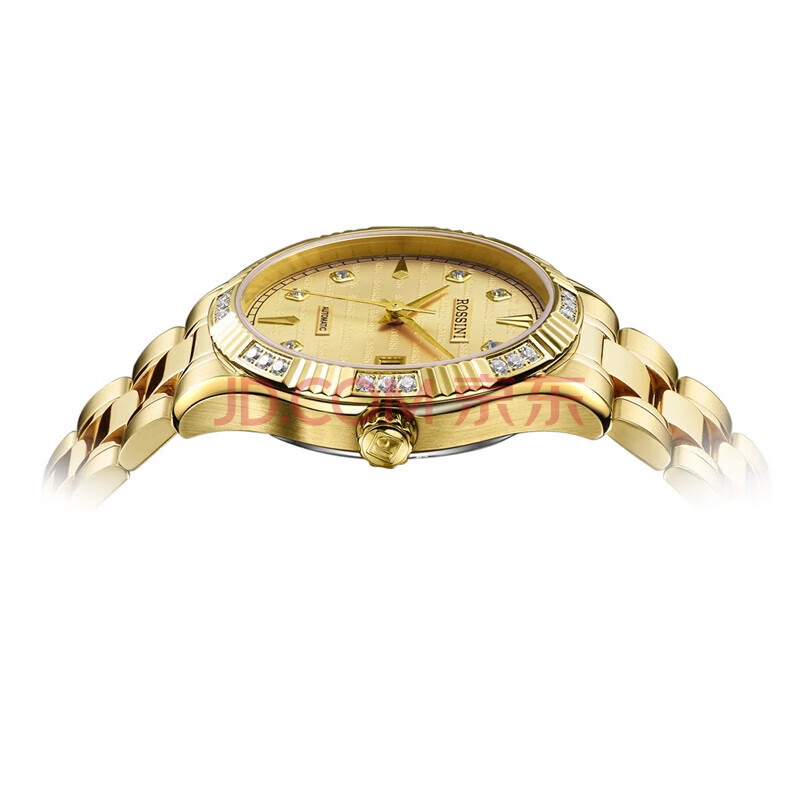 商品相册:罗西尼(ROSSINI)男士手表机械表金色盘钢带生日礼物送男友国表锆钻日历防水 6705第