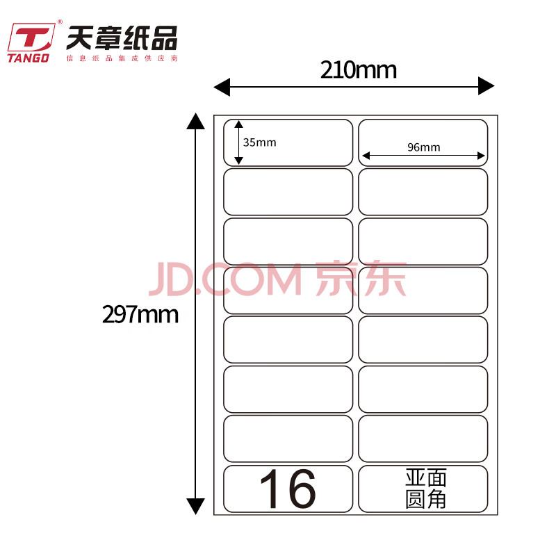 商品相册:天章 (TANGO)A4不干胶打印纸 背胶纸可粘贴标签纸贴纸不粘胶姓名贴 黄底哑面圆角16枚/张(96*35mm)80张/盒第