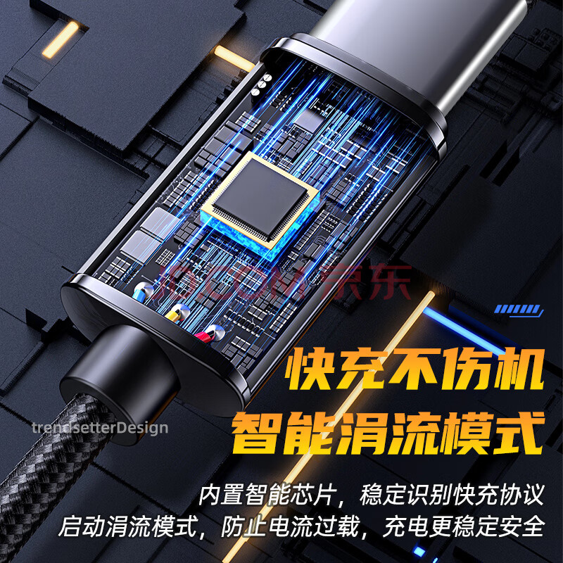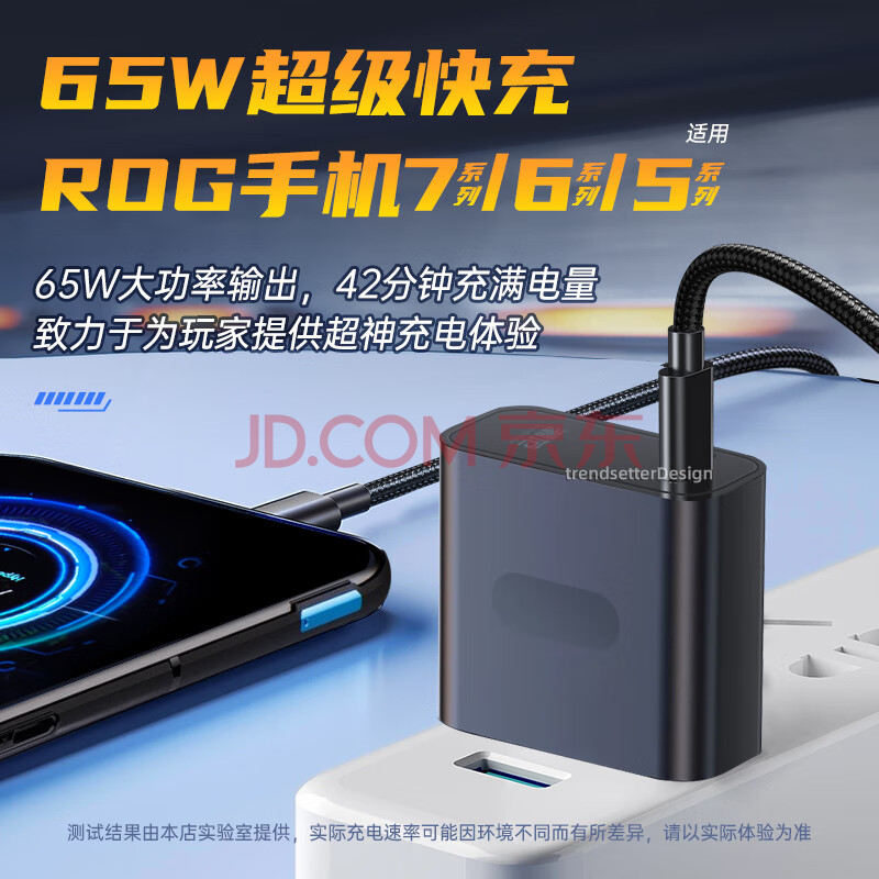 商品相册:trendsetter适用华硕rog充电器65W快充双type-c数据线5A编织充电线PD插头套装rog9/8/7/6/5/pro游戏手机通用第