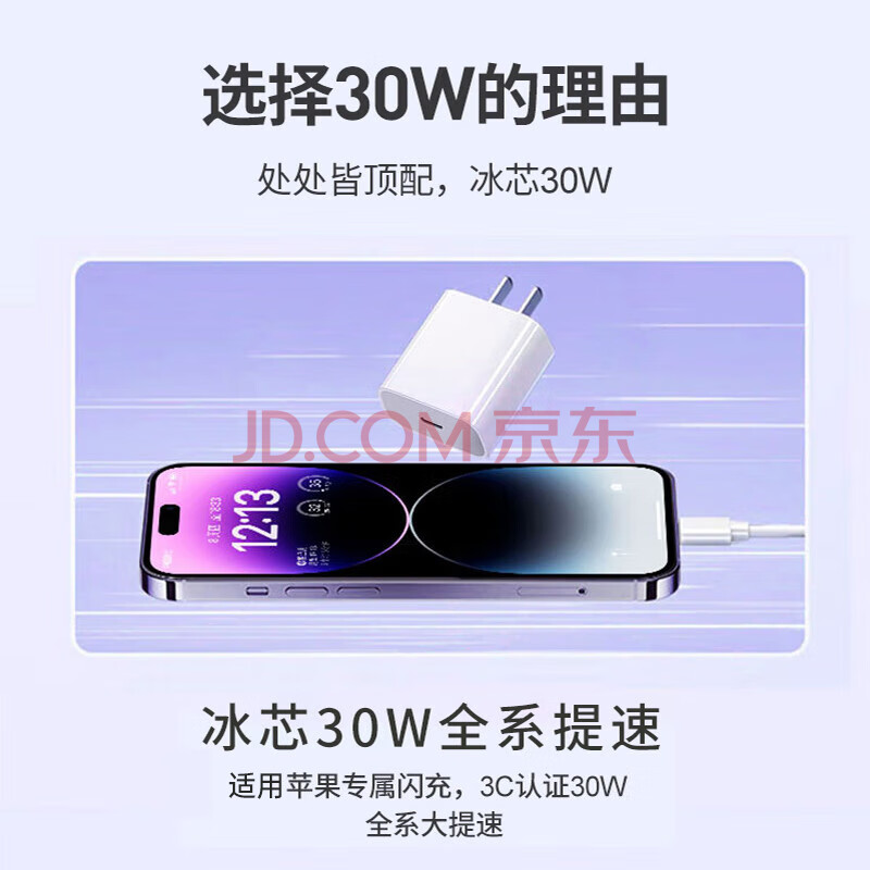 商品相册:斯泰克 适用于苹果充电器头快充PD30w兼容快充套装充电线iPhone15/14/13/12proMax/mini手机/iPadair平板第