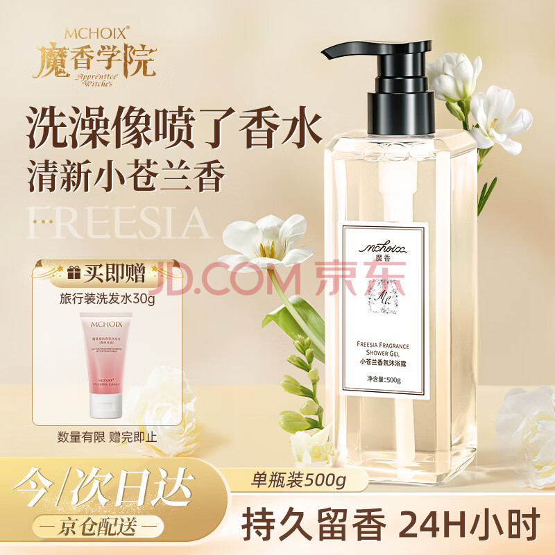 商品相册:魔香小苍兰香水沐浴露男女士持久留香72小时香体保湿滋润沐浴乳液500g第