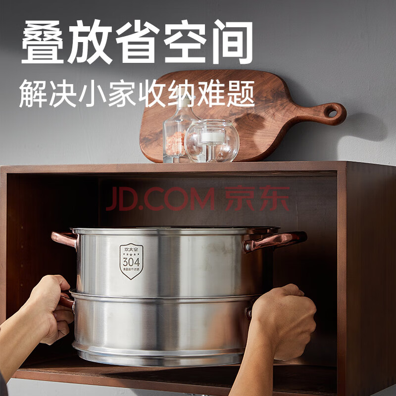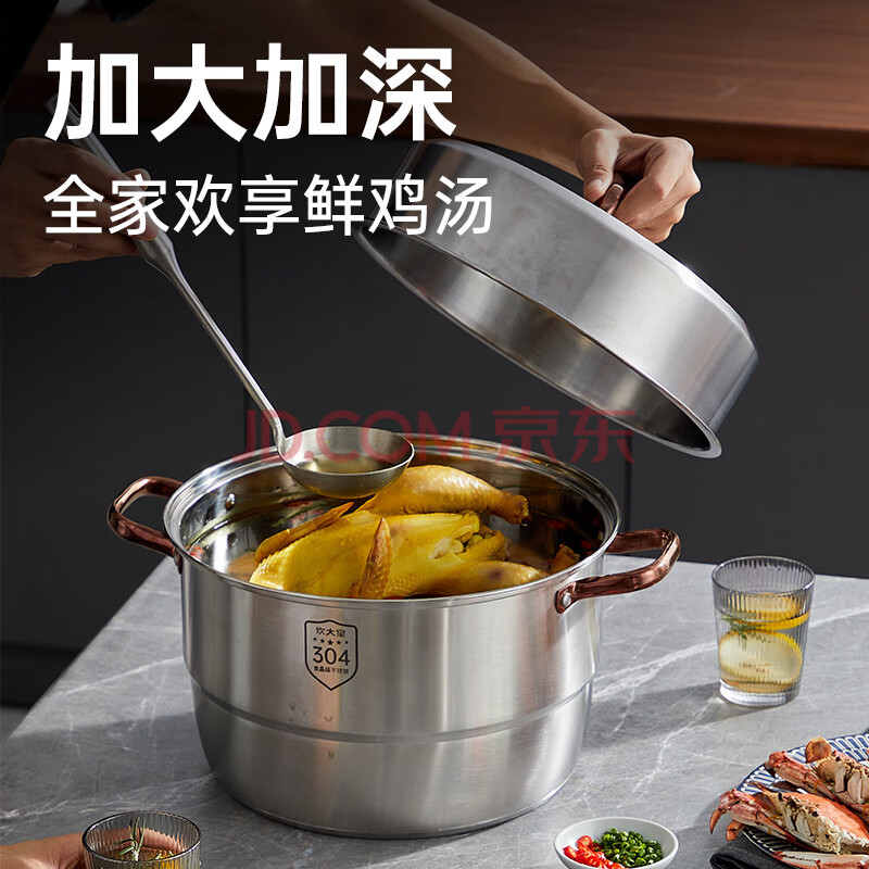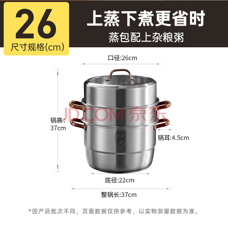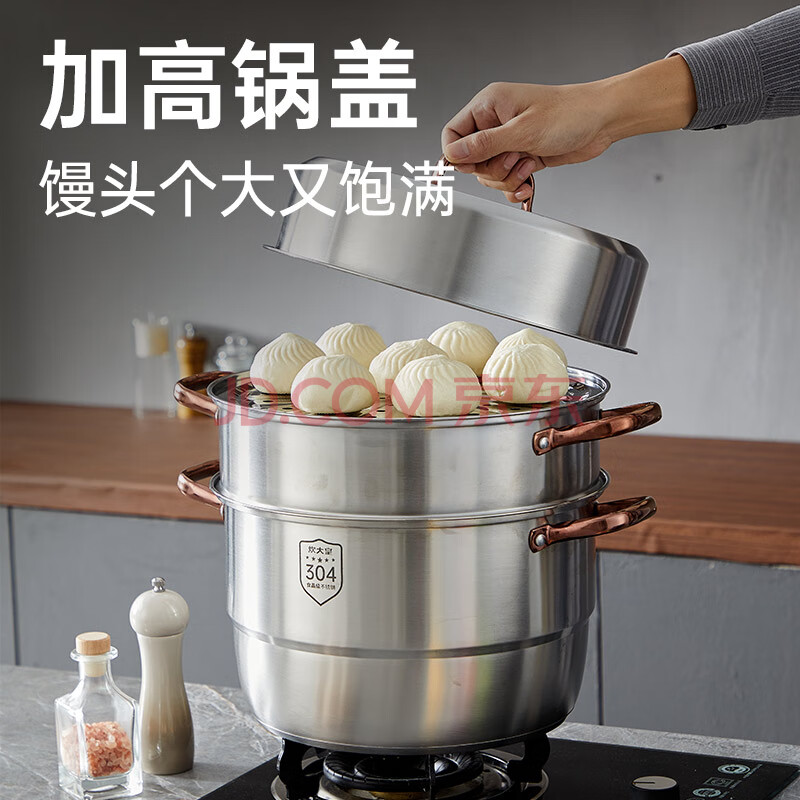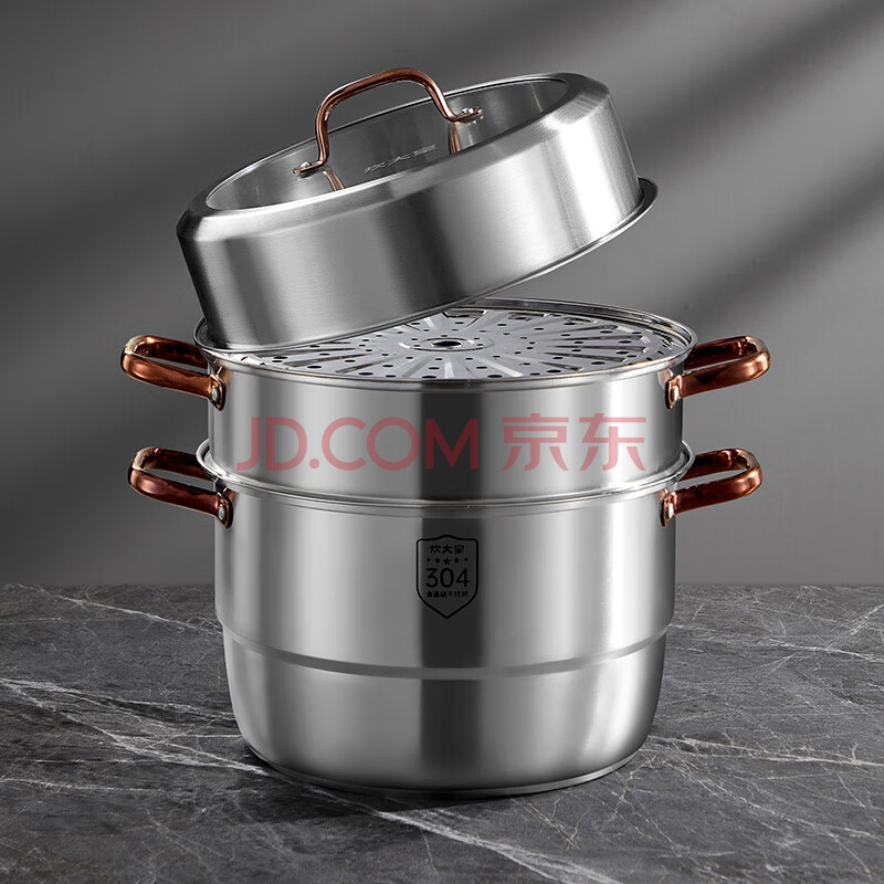 商品相册:炊大皇 三层蒸锅304不锈钢复底26cm 大容量蒸鱼锅汤锅蒸笼 电磁炉通用第