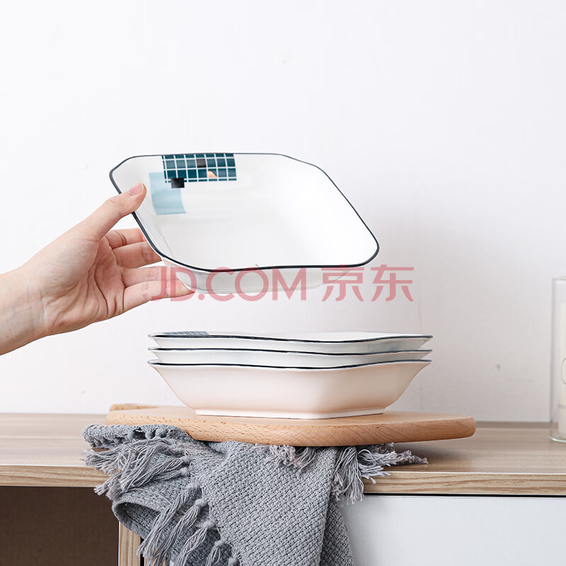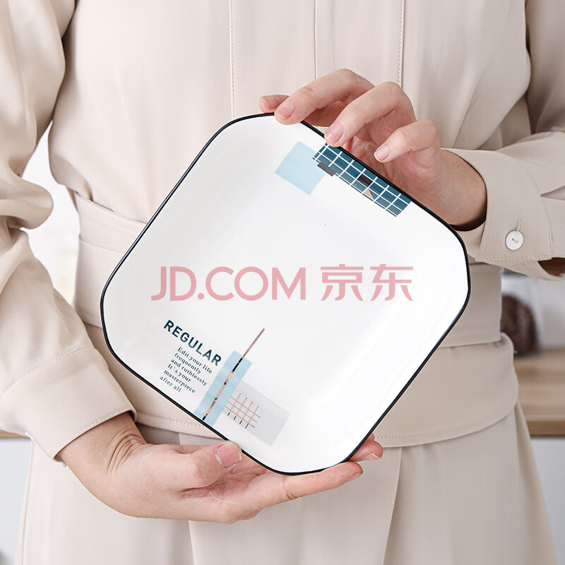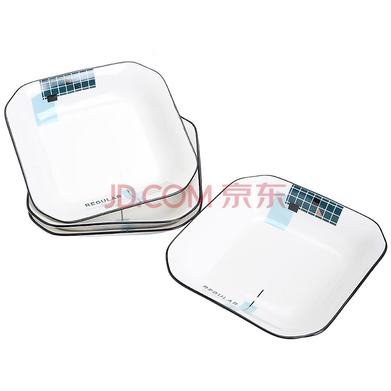 商品相册:苏氏陶瓷城市方格日韩小清新简约家用陶瓷碟子4只装中餐具8.5英寸四方盘第