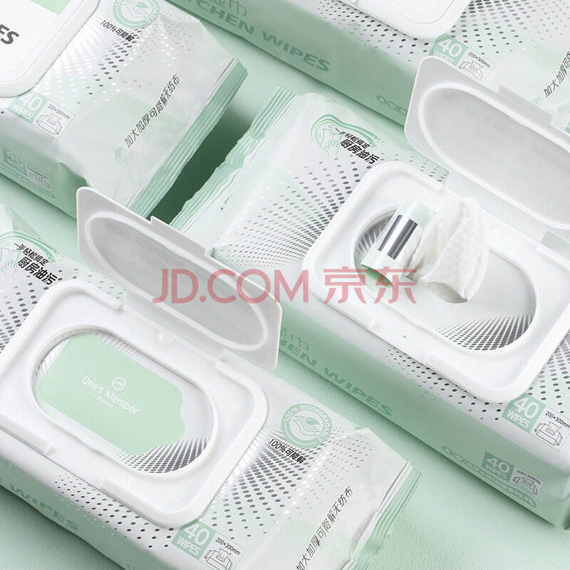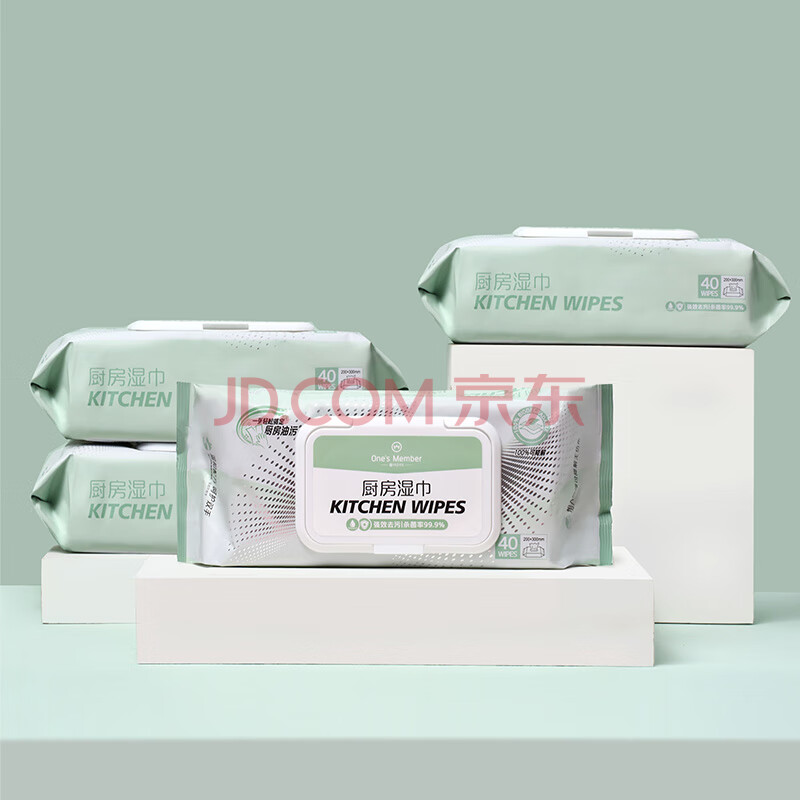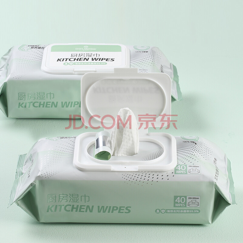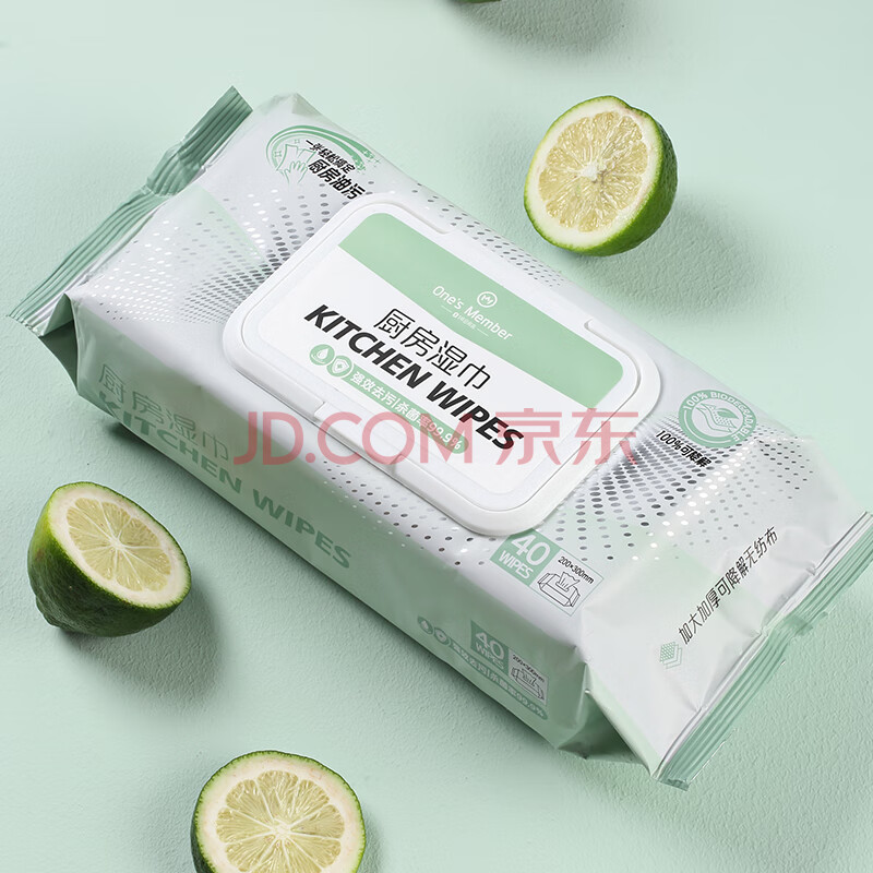 商品相册:1号会员店(One's Member) 强效去污厨房湿巾 20倍强效去油污加大加厚 40片*4包 第1张/共8