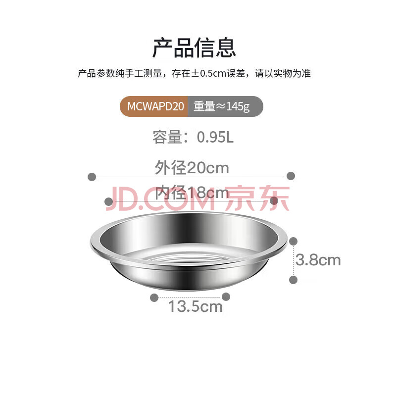 商品相册:美厨(maxcook)加厚304不锈钢盘碟 盆碟20CM MCWAPD20 加宽加深 耐摔第