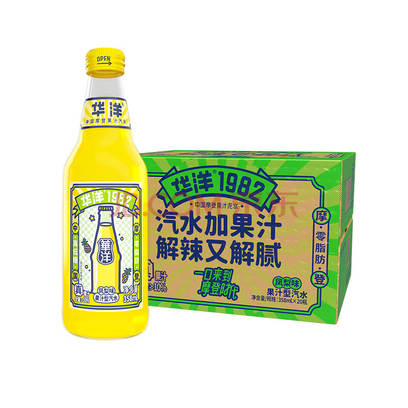 商品相册:华洋1982汽水果味碳酸饮料凤梨味358ml*20瓶低糖0脂饮品第