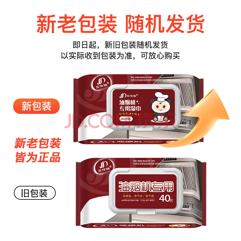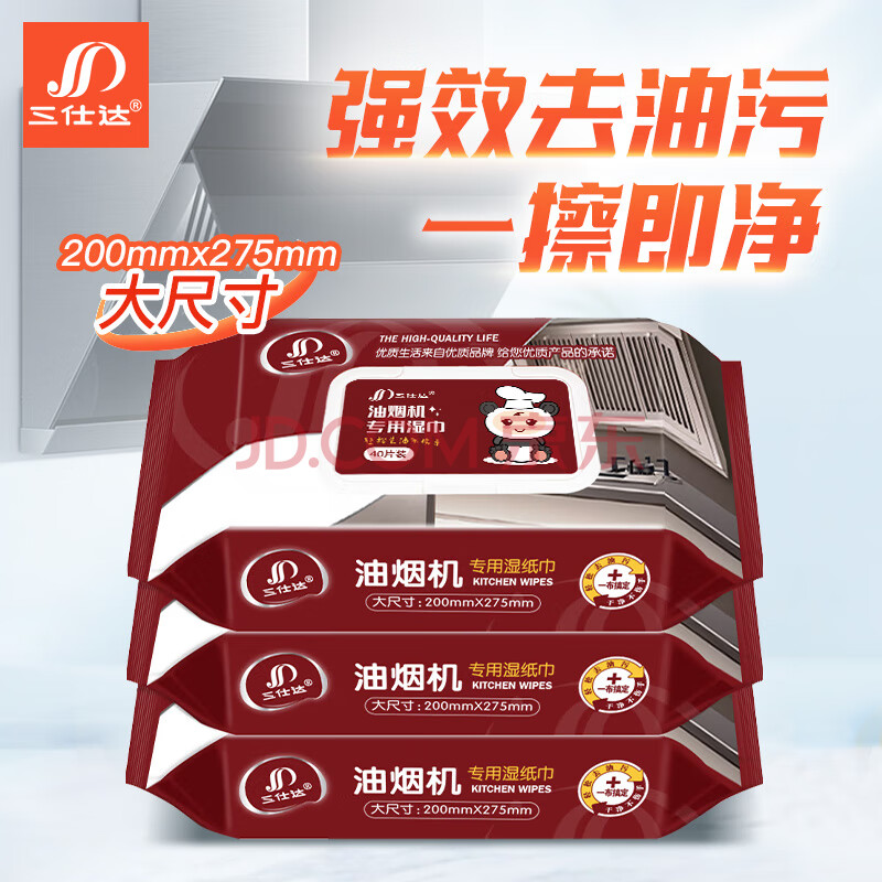 商品相册:三仕达油烟机湿巾40片*3包去油去污厨房湿巾灶台灶具家用清洁巾厨房用纸第