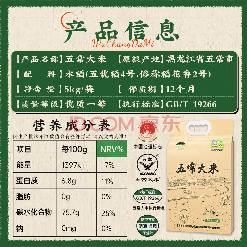 商品相册:陆家围子陆家村 五常大米 官方溯源 原粮稻花香2号 当季新米 东北大米10斤第