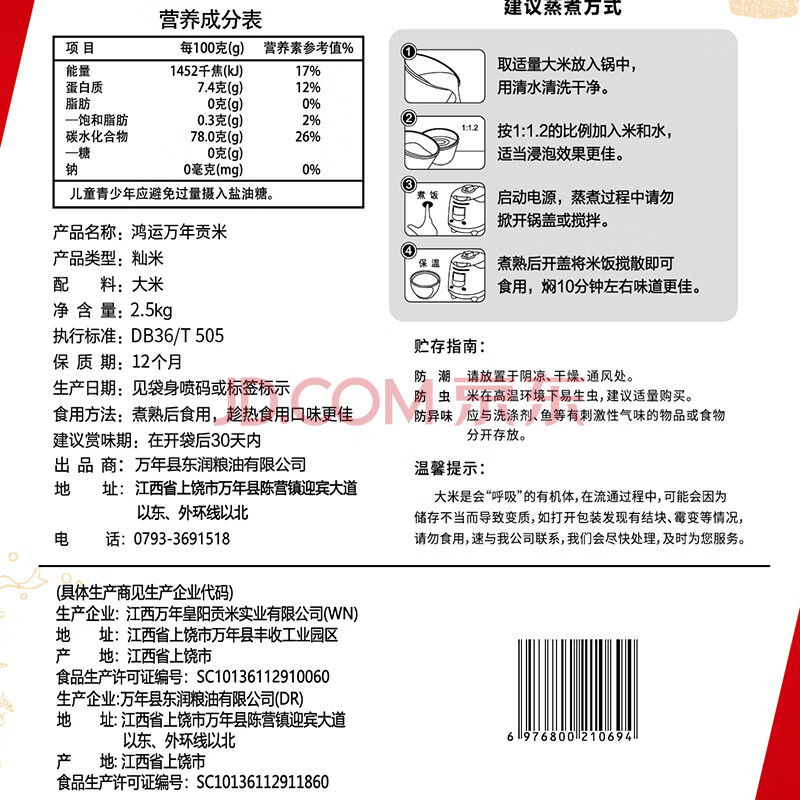 商品相册:万年贡鸿运万年贡米 江西大米 地标产品 长粒丝苗米 5斤 新米大米第