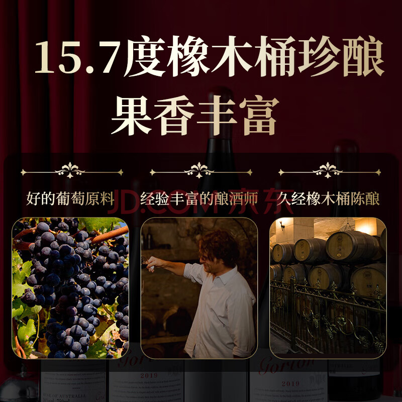 商品相册:歌瑞安 澳洲进口15.7度蜡封红酒 西拉干红葡萄酒750ml*6瓶整箱礼盒装第