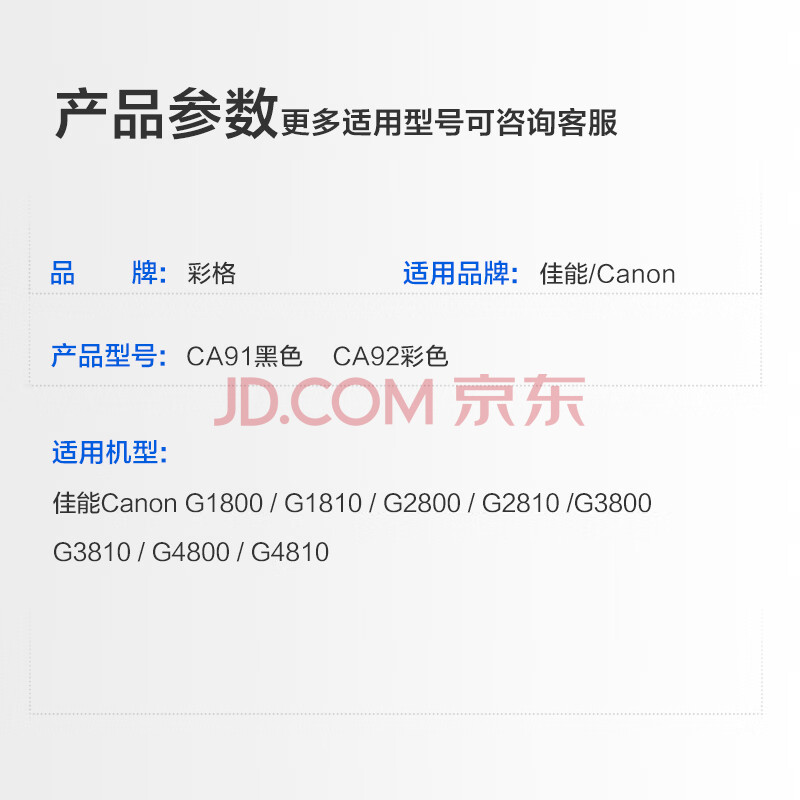 商品相册:彩格适用CA91 CA92打印头适用佳能G1800 G2800 G3800 G4800 G1810 G2810 3810 G4810打印机喷头 墨盒canon黑色第