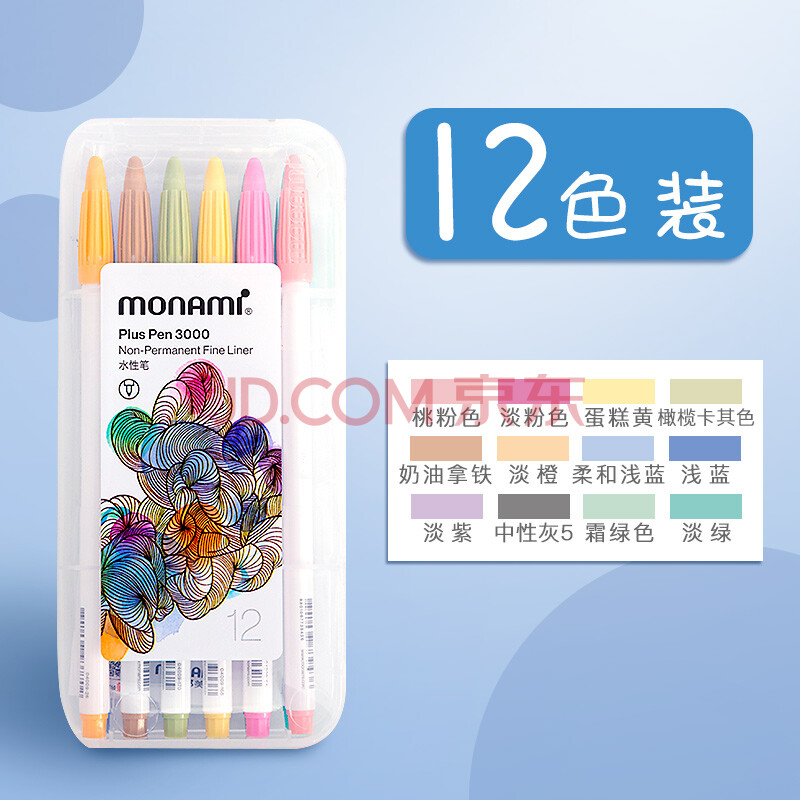 商品相册:慕那美(monami)新P3000纤维笔水性笔彩色中性笔套装水彩笔勾线笔手帐笔柔和12色04009Z12-S水彩笔第