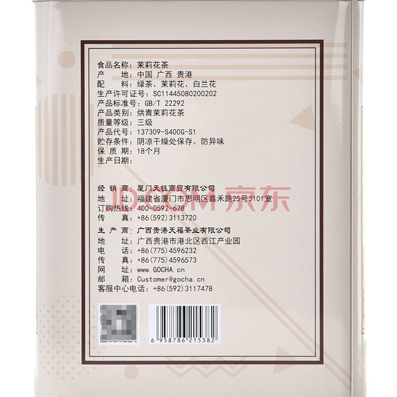 商品相册:天福茗茶茉莉花茶 广西横县花茶400g大罐装足量茶叶自饮送礼第