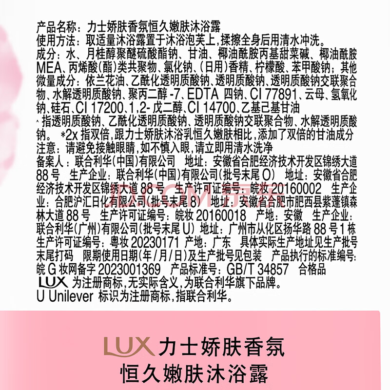 商品相册:力士(LUX)恒久嫩肤 娇肤香氛沐浴乳550g 留香第