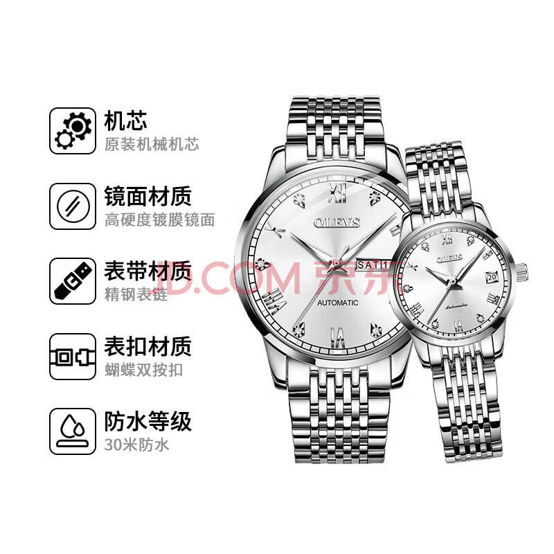 商品相册:欧利时(OLEVS)情侣对表一对手表男款全自动机械表女表防水夜光时尚潮流生日礼物第