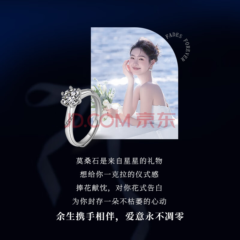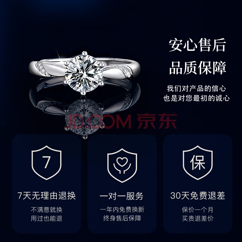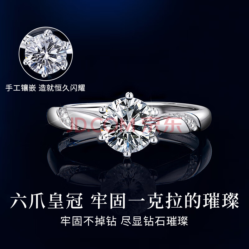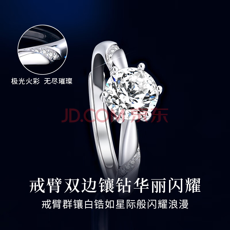 商品相册:珍尚银中国黄金钻戒求婚戒指莫桑钻戒指女款1一克拉莫桑石纯银戒指S925第
