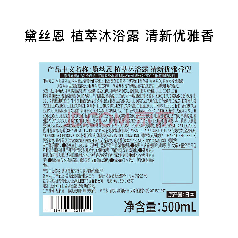 商品相册:黛丝恩植萃滋润保湿沐浴露500ml(清新优雅香)第
