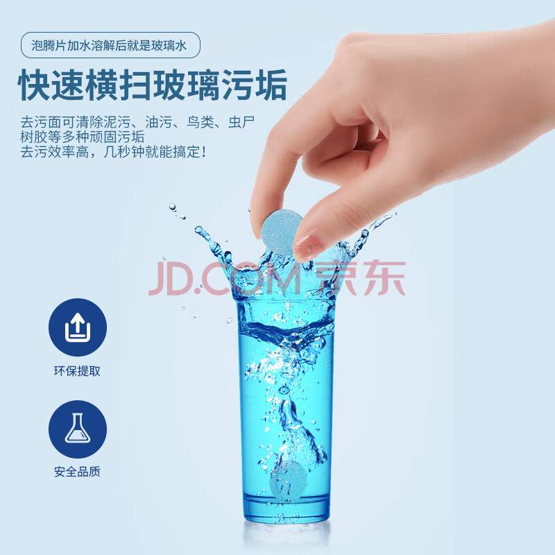 商品相册:拉夫德鲁固体玻璃水泡腾片去油膜汽车雨刮水浓缩虫卵树胶去污家用清洁水常温到零下5度车用家用简单方便保质期2年一片兑4升水PT-2第