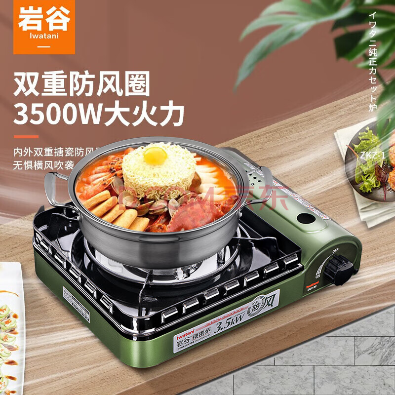 商品相册:岩谷便携卡式炉 自驾游户外防风野炊燃气炉 火锅炉具ZKZ-2F+汤锅套装第