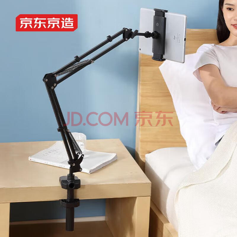 商品相册:京东京造 悬臂支架平板手机支架懒人床上支架平板网课桌面俯拍直播支撑架设备通用【4.5-10.5英寸设备】第
