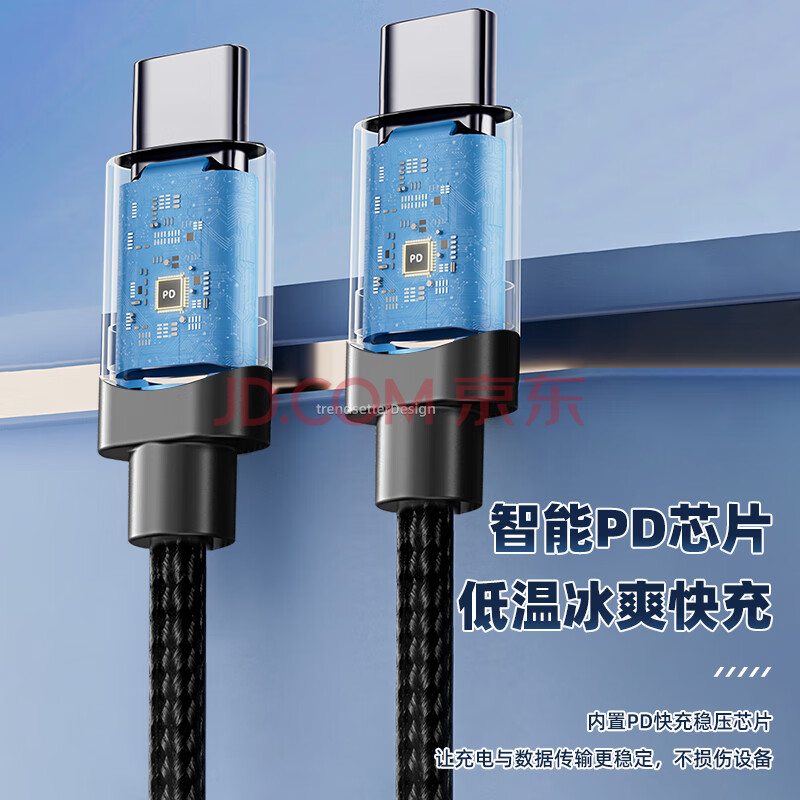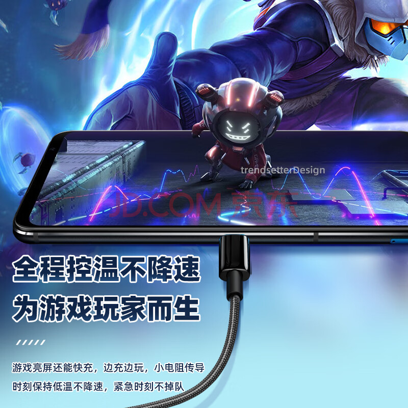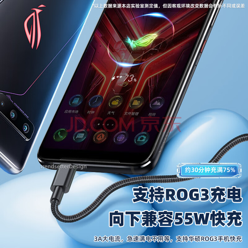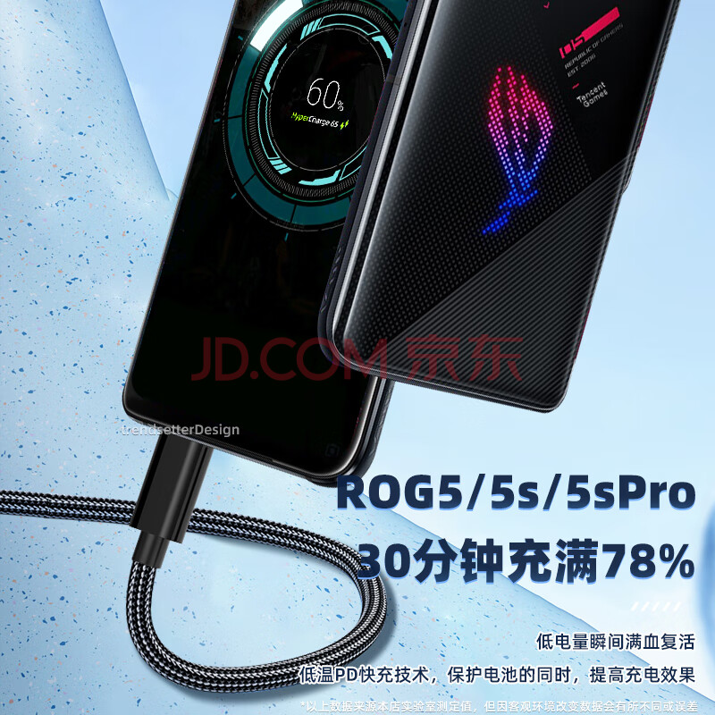商品相册:trendsetter适用华硕rog数据线充电线65W快充2米加长rog9/8/7/6/5S/pro手机rog掌机游戏机双头type-c编织pd线第