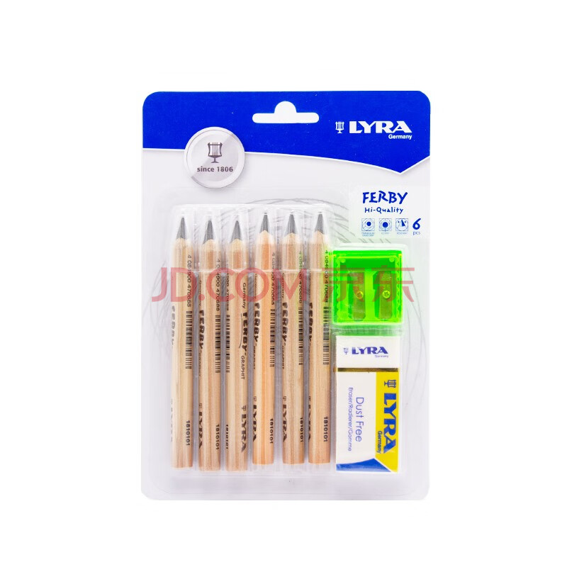 商品相册:LYRA德国艺雅加粗洞洞铅笔套装 小学生考试涂卡儿童铅笔 原木杆铅笔6支 (笔帽+转笔刀+橡皮)L1818002C第