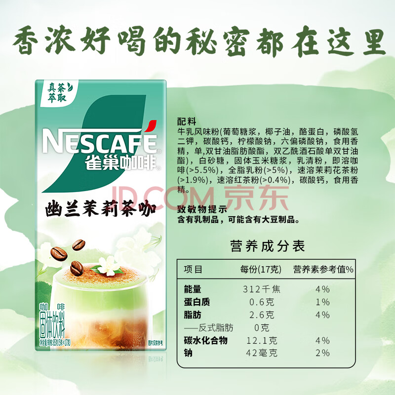 商品相册:雀巢(Nestle)咖啡特调系列奶茶咖啡幽兰茉莉奶茶速溶冲调饮品17gx5条第