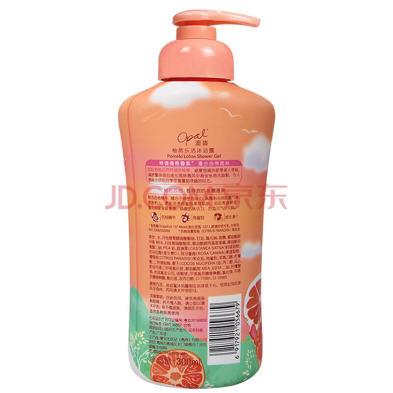 商品相册:澳宝柚然乐活情绪香氛沐浴露 氨基酸保湿补水西柚沐浴乳液300ml第1张/共2