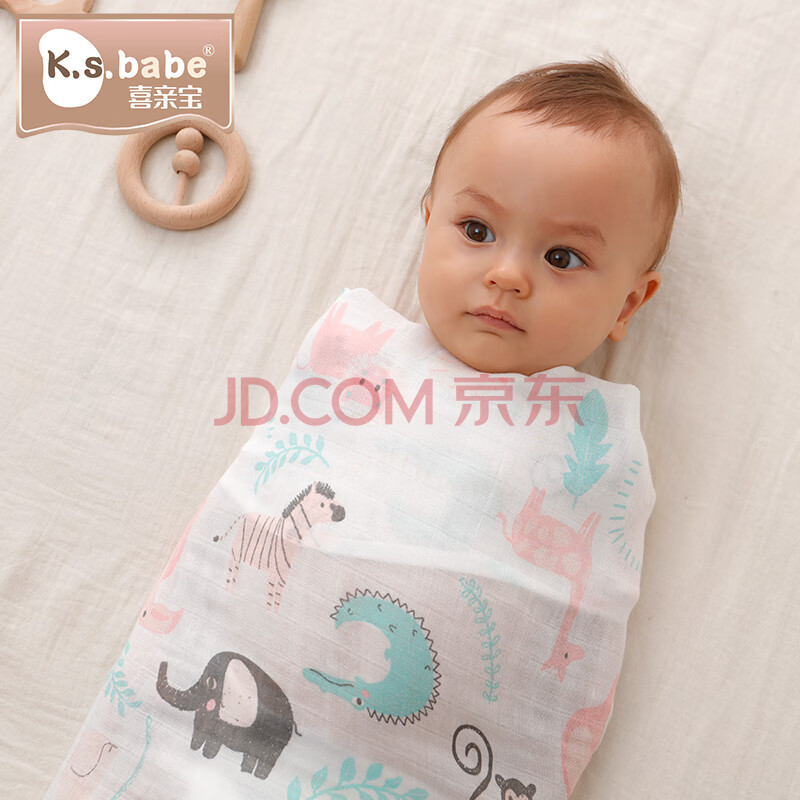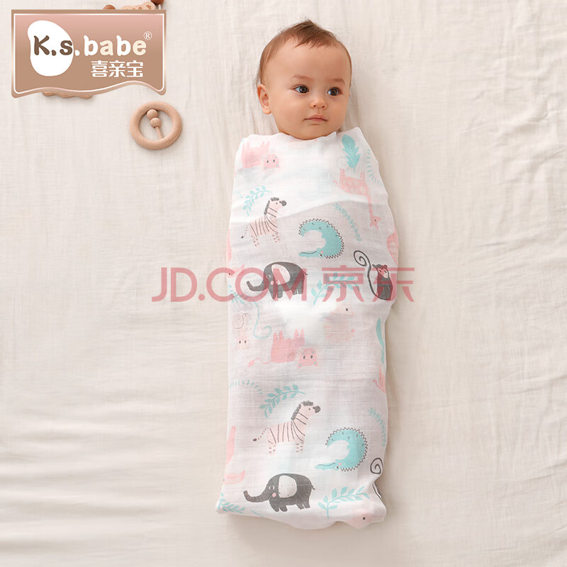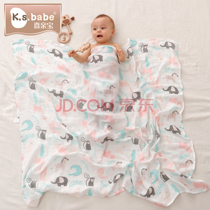 商品相册:喜亲宝新生儿防惊跳包单盖毯纱布遮挡巾喂奶巾115*130cm厘米动物世界第