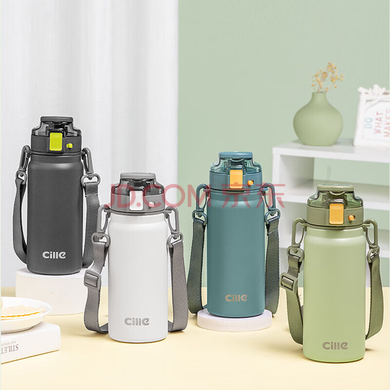 商品相册:希乐保温杯316不锈钢高颜值男女士户外健身运动双饮弹跳杯栗子绿600ml第