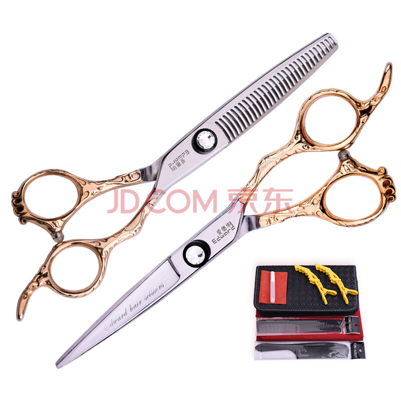 商品相册:爱德华(EDWARD) 专业美发剪刀理发套装打薄剪刘海剪平剪牙剪玫瑰金C706送皮包第