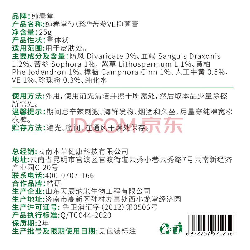 商品相册:纯春堂云南本草湿诊膏成人止痒汗疱瘙痒阴囊潮湿肛门疹草本抑菌膏*3第