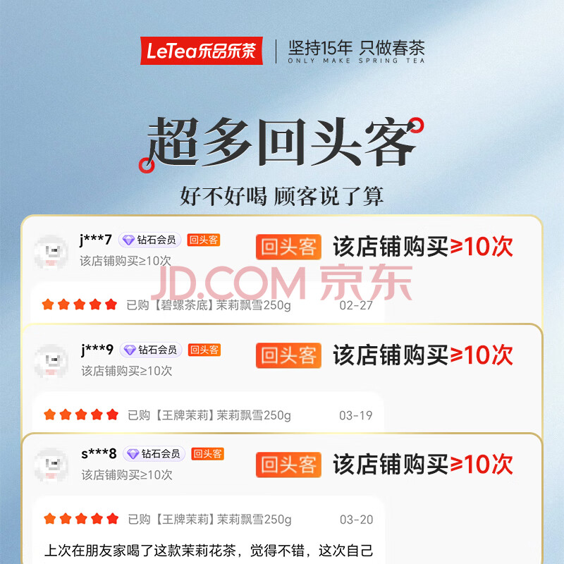 商品相册:乐品乐茶茉莉飘雪浓香茉莉花茶横县特级碧螺春茶新茶250g金罐伴手礼自己喝第