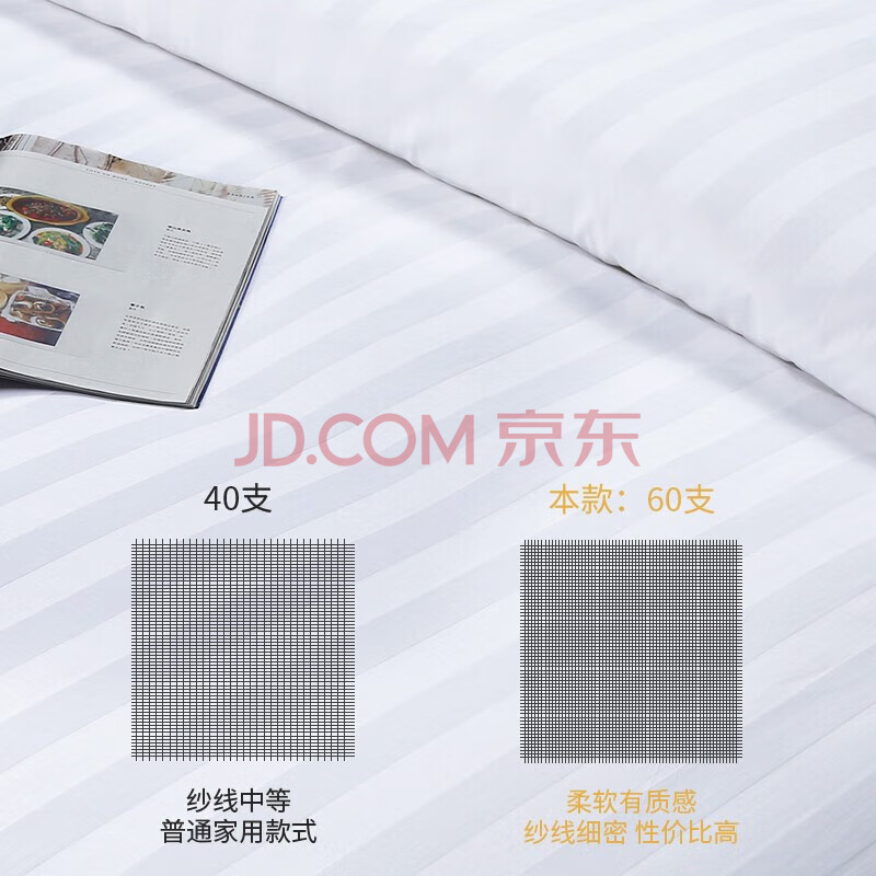 商品相册:源生活 白色酒店缎条被套单件 60支全棉单人纯色纯棉被罩 1.2米床第