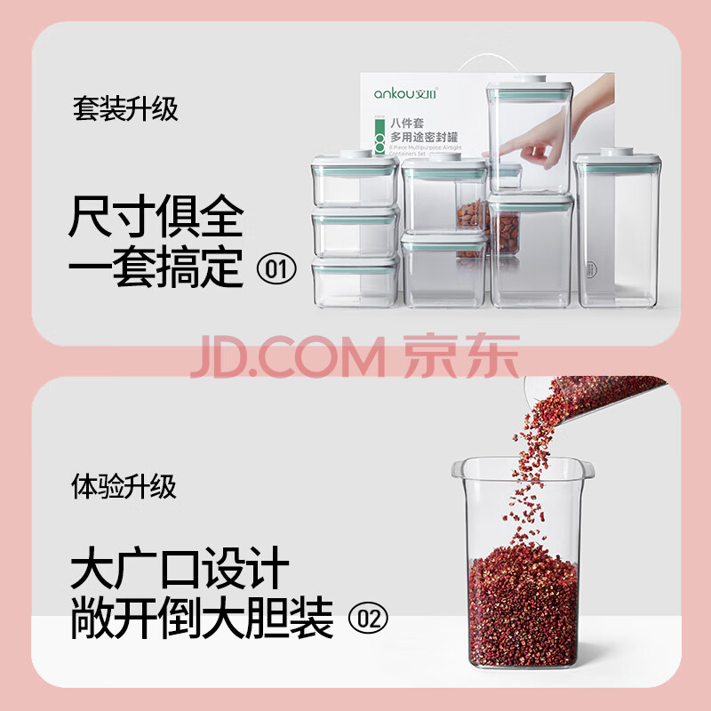 商品相册:安扣(ANKOU)密封罐食品级杂粮米面收纳盒大容量米桶罐子密封盒收纳罐第