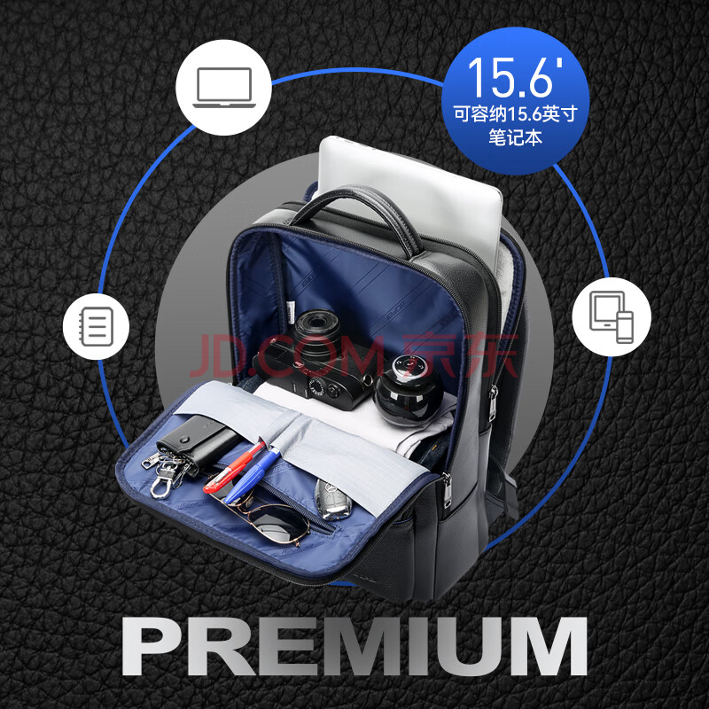 商品相册:博牌双肩包头层牛皮商务背包男士电脑包旅行书包细纹节日礼物送老公第