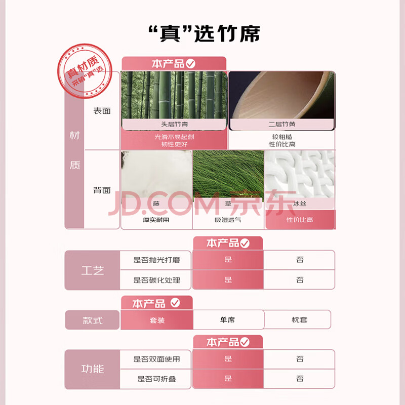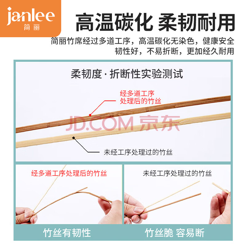 商品相册:简丽悦享碳化竹席凉席三件套双人席子1.5米【配一对冰丝枕套】第