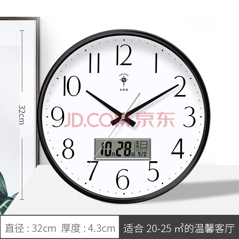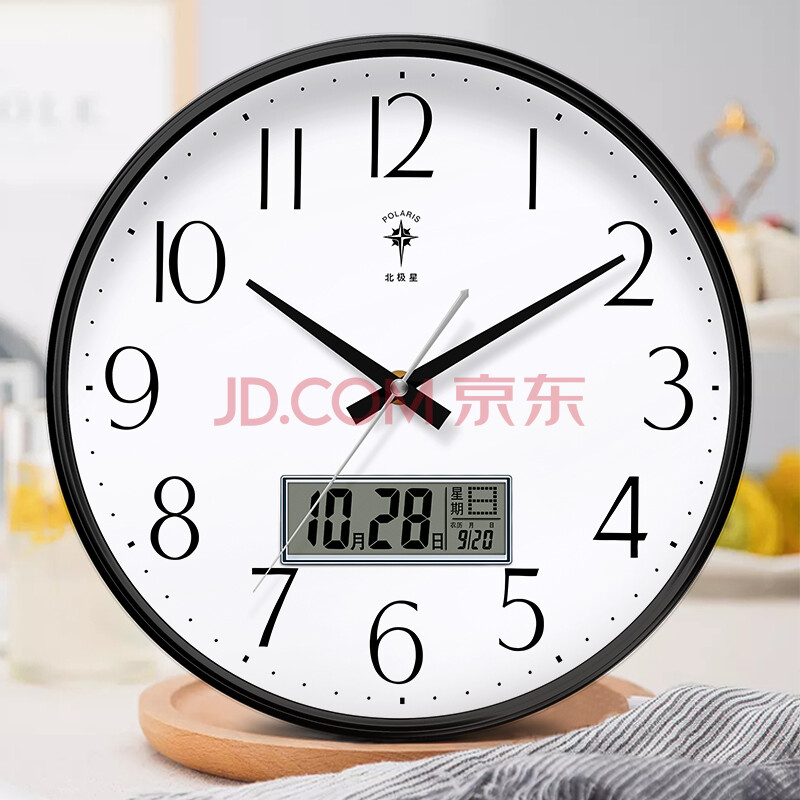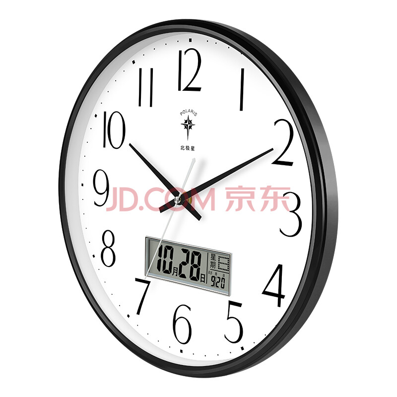 商品相册:北极星(POLARIS)挂钟圆形客厅钟表万年历现代石英钟时尚日历时钟创意挂表6810黑色第