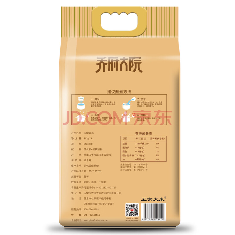 商品相册:金福乔府大院 有机五常大米 5斤 新米 五优稻四号(313gx8)独立包装第