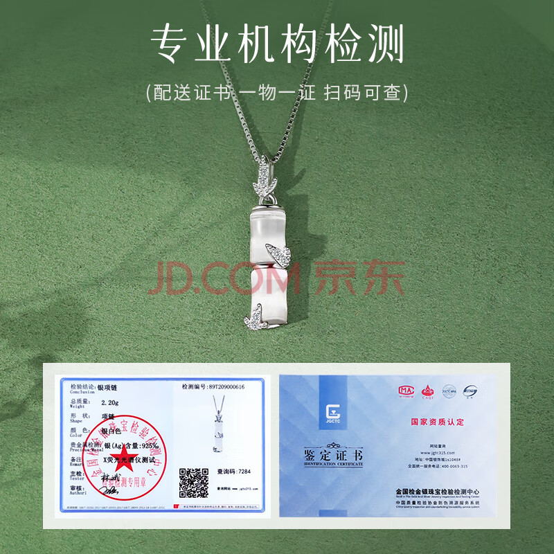 商品相册:曼禾(MANHE)S925银竹节项链女士2026新款吊坠锁骨链首饰老婆生日礼物送女朋友第