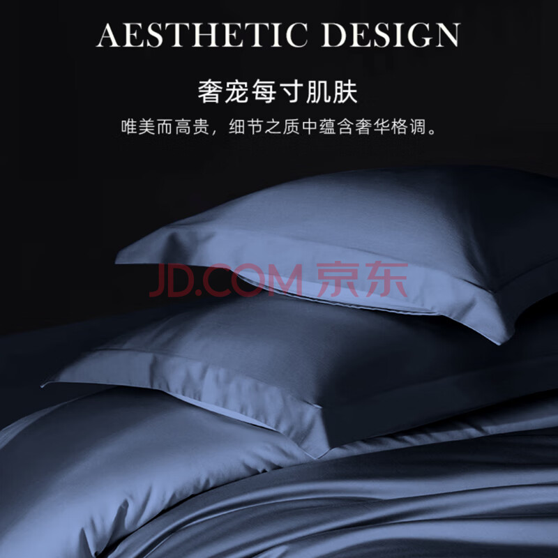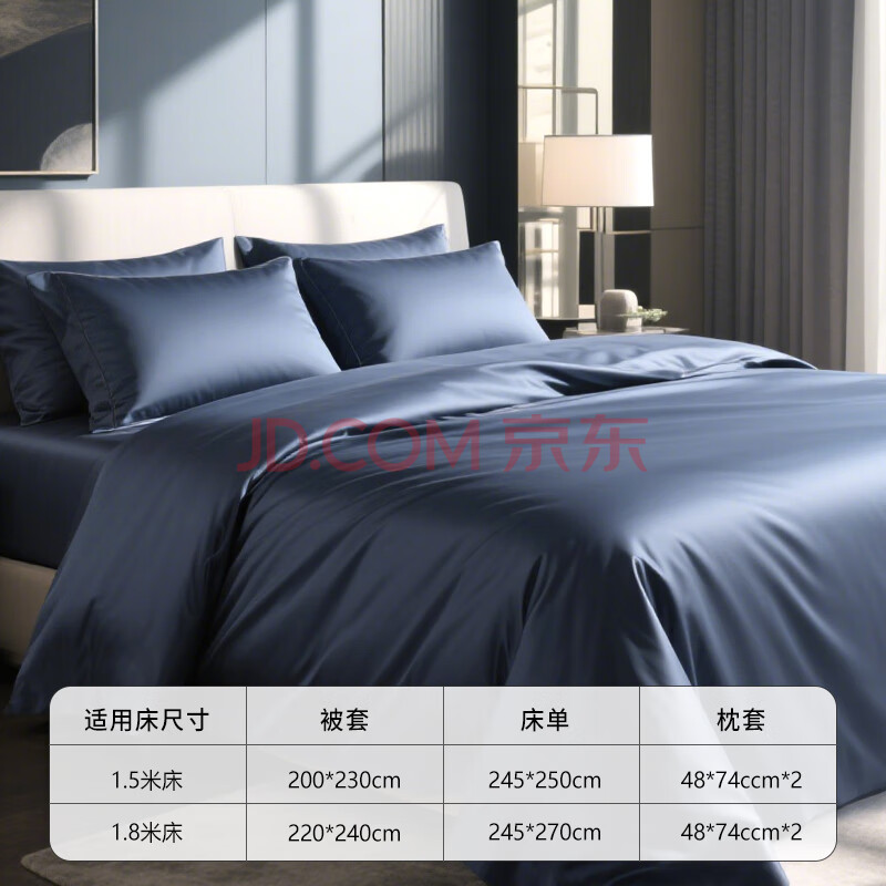 商品相册:源生活100支贡缎四件套 全棉冬季床上用品 纯色高端套件1.8米床 220x240cm 静谧蓝第