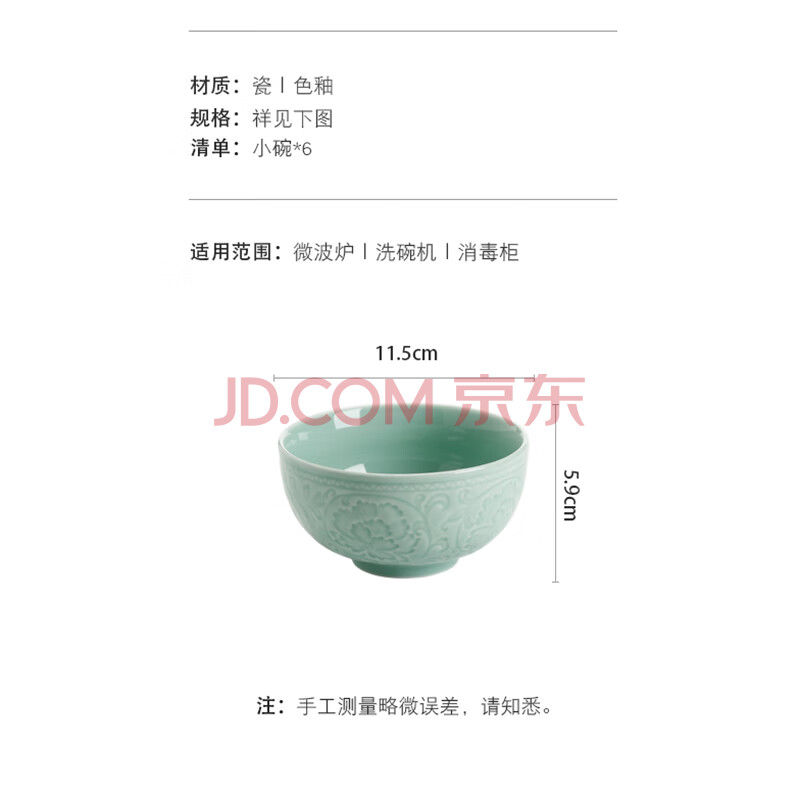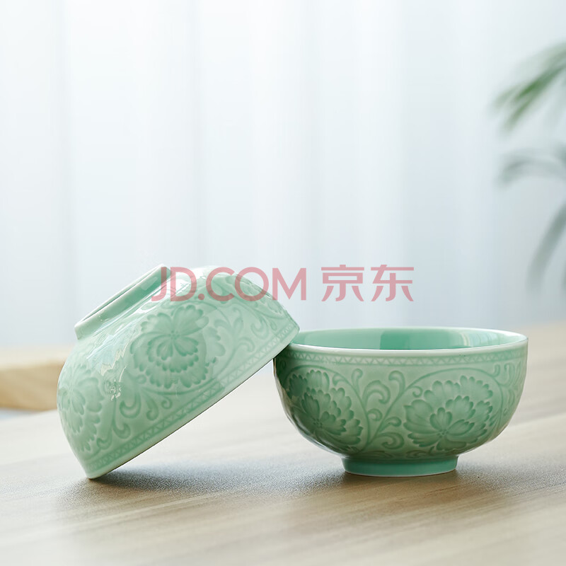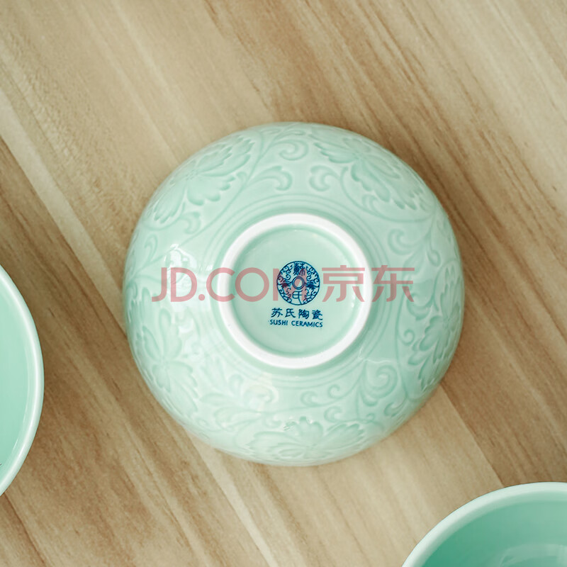 商品相册:苏氏陶瓷(SUSHI CERAMICS)青瓷釉陶瓷碗花开富贵米饭碗汤碗6件套装餐具第1张/共7