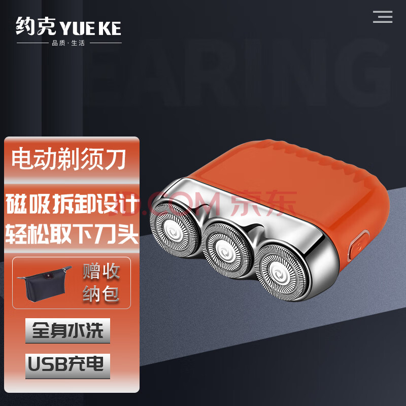 商品相册:约克(YUEKE) 男士电动剃须刀男 便携式迷你刮胡刀 送老公七夕情人节礼物 MINI有多色胡须刀 YK-358橙色第