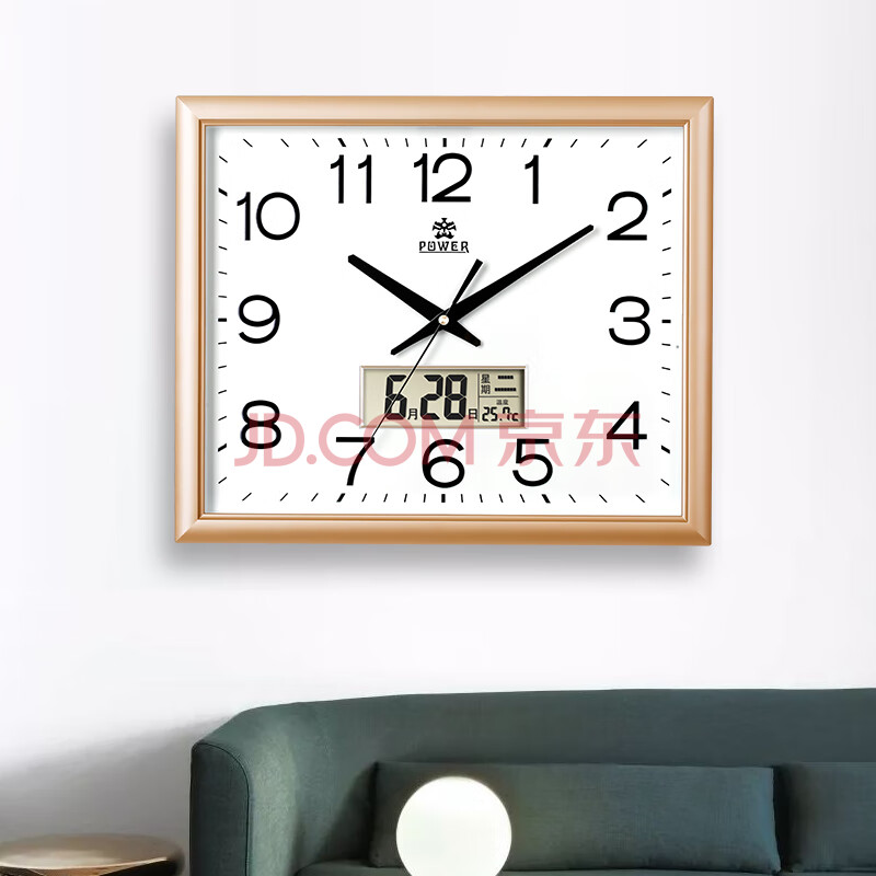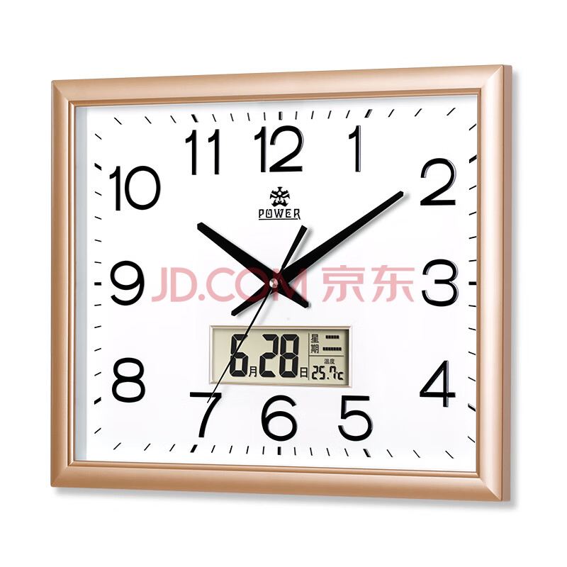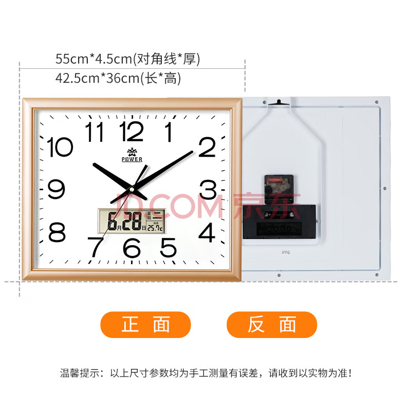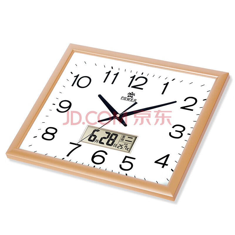 商品相册:POWER霸王挂钟大号方形钟表中式大气万年历温度时钟办公挂表长42cm第