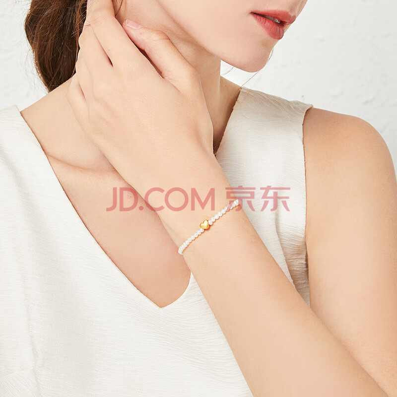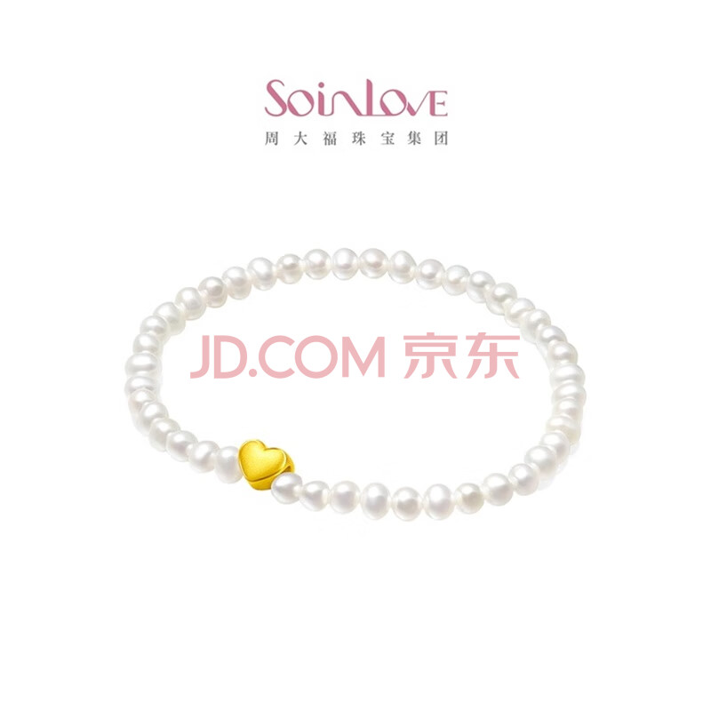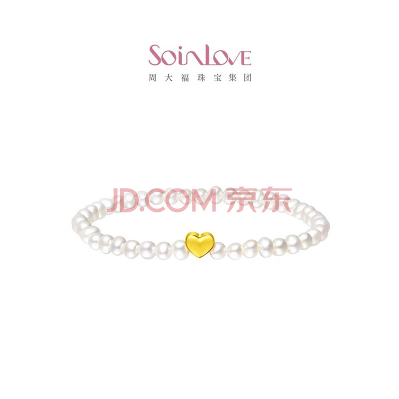 商品相册:周大福SOINLOVE爱蜜金黄金爱心珍珠手链16.25cm VR882生日礼物第