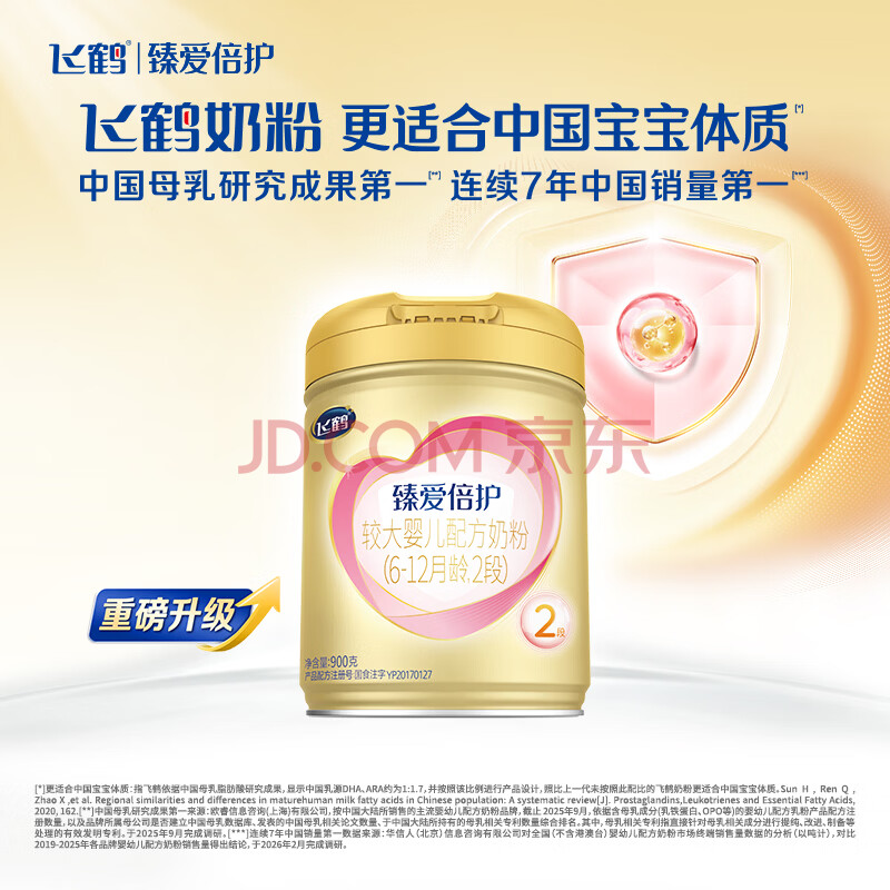 商品相册:飞鹤臻爱倍护超级飞帆 婴幼儿配方奶粉 2段(6-12月)900g*6罐 乳铁蛋白第1张/共1