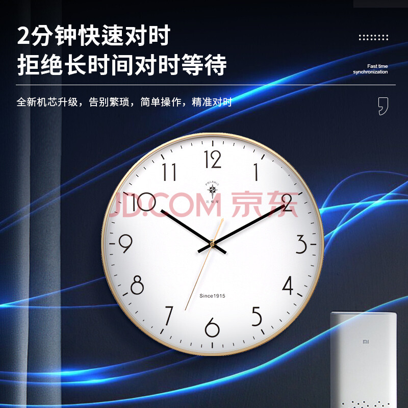 商品相册:北极星(POLARIS)挂钟自动对时客厅家用智能电波挂表轻奢时钟30cm轻奢金第