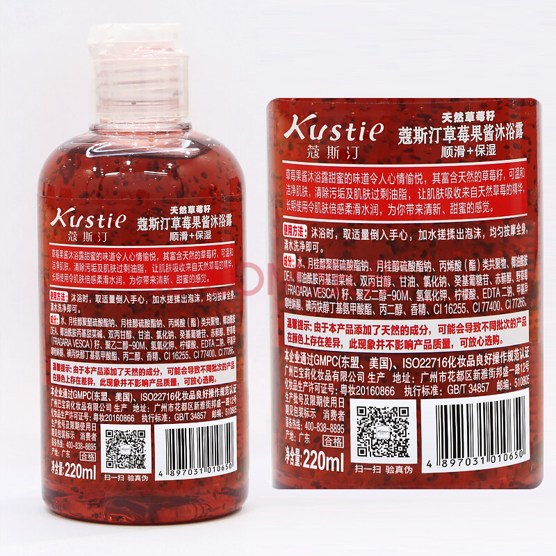 商品相册:蔻斯汀(Kustie)草莓果酱沐浴露220g 持久留香浴液泡沫细腻丰富深层清洁滋润保湿第